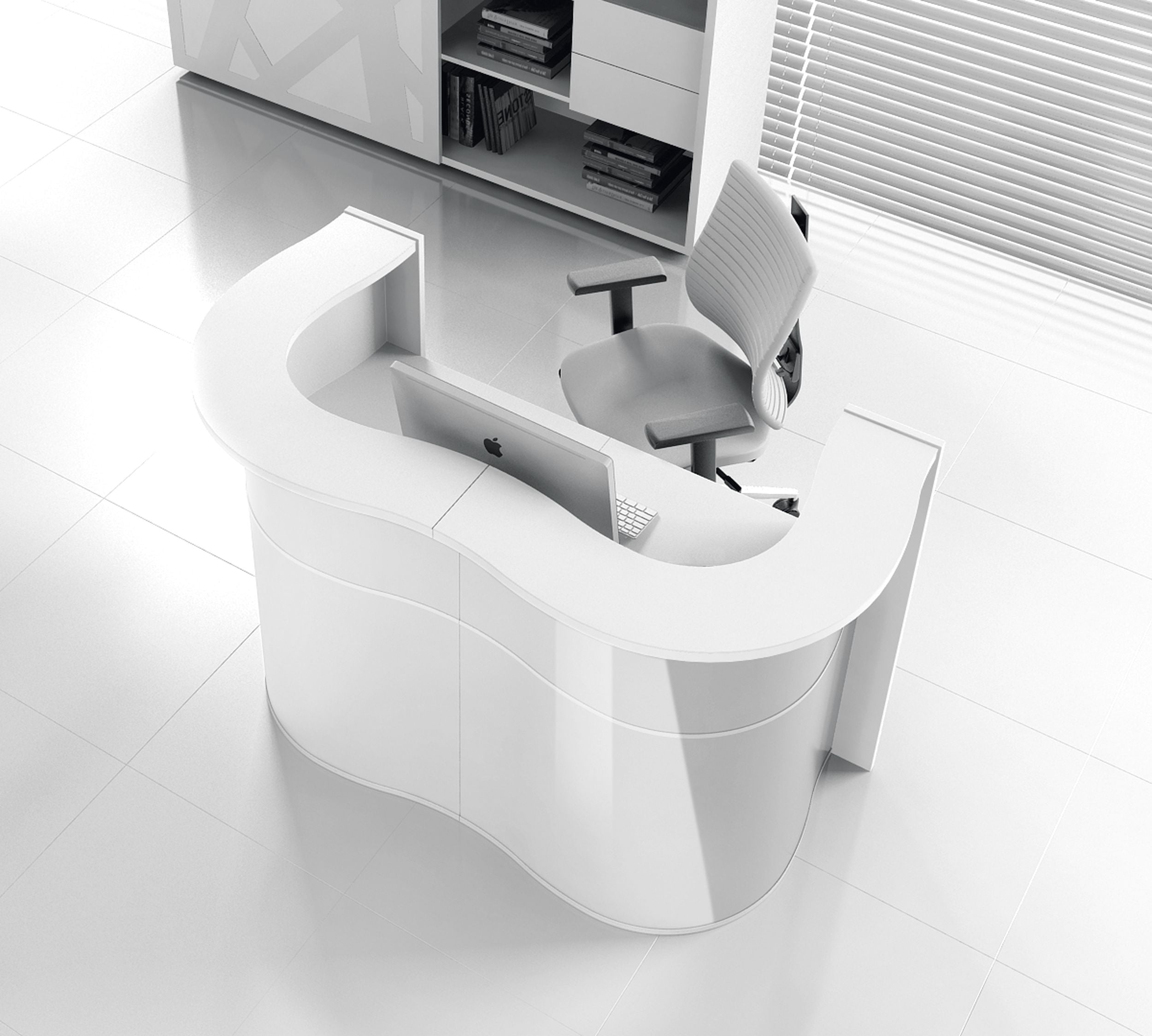 Lekkość, organiczny kształt i prosta elegancja. Nowa lada Wave zachwyca delikatnym designem, przywodzącym na myśl fale uśpionego oceanu. Charakteru dodają jej dodatkowo dekoracyjne listwy przy cokole oraz biały blat wykonany ze szkła Lacobel. Recepcja Wave dopasowuje się do Państwa potrzeb i gustów, dlatego dostępna jest w różnych modułach i wersjach kolorystycznych. Front standardowej lady występuje w czterech kolorach: białym, pomarańczowym, zielonym, bordowym.